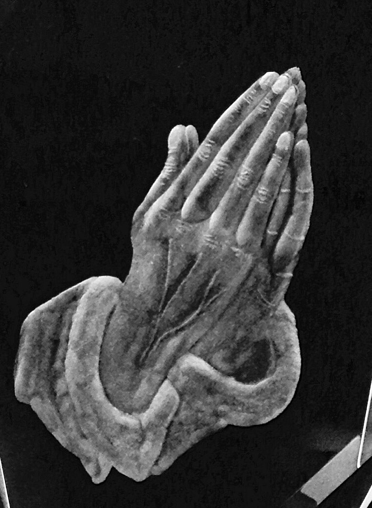Glass Plaque with religious motif of "hands in prayer". Suitable for a religious celebrations such as a baptism, first holy communion, or confirmation, the "hands in prayer" can be engraved on any glass.